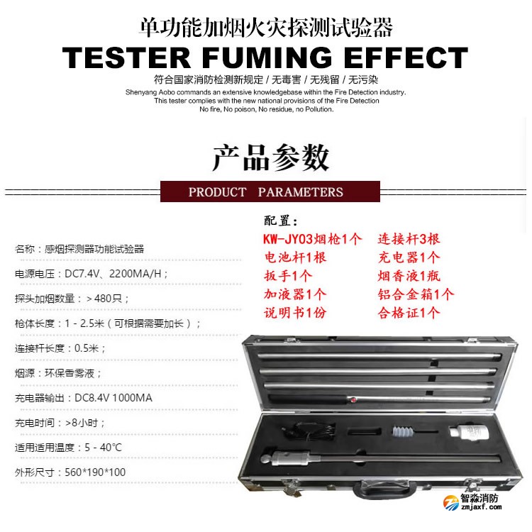 ZM-Y感煙探測器功能試驗器是4+2全功能火災(zāi)探測器試驗器的子產(chǎn)品,利用物理學和化學原理控制和轉(zhuǎn)換技術(shù),采用環(huán)保型霧香液通過電子能量轉(zhuǎn)換,將液體釋放哦顆粒煙霧,取代并淘汰了傳統(tǒng)的棒香發(fā)煙方式,發(fā)出的煙霧無明火、無煙灰、無煙油,對探頭無二次污染。以其結(jié)構(gòu)緊湊,外形精美,攜帶方便,組裝簡單,操作靈活,槍體輕便,性價比高等受到廣大用戶的青睞。全結(jié)構(gòu)為不銹鋼設(shè)計,鋁合金箱包裝,可對感煙類(各種型號的離子、光電及復(fù)合類煙感探測器)火災(zāi)探測器進行維護、檢測、調(diào)試、驗收、靈敏度試驗。是遼寧消防檢測、消防工程及使用火災(zāi)報警系統(tǒng)的單位輔助工具。
