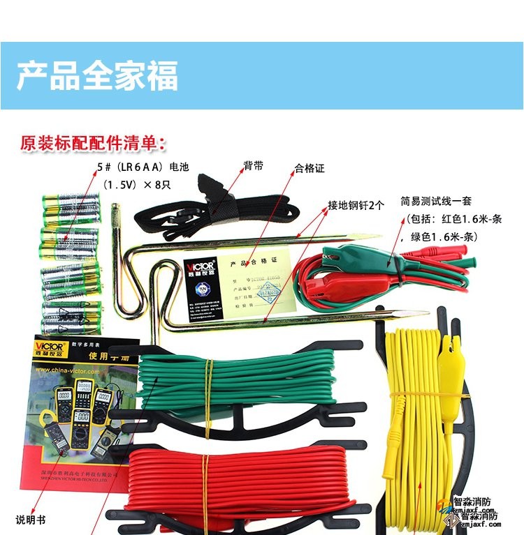 測試線長 | 3條:紅色15m,黃色10m,綠色5m各1條 |